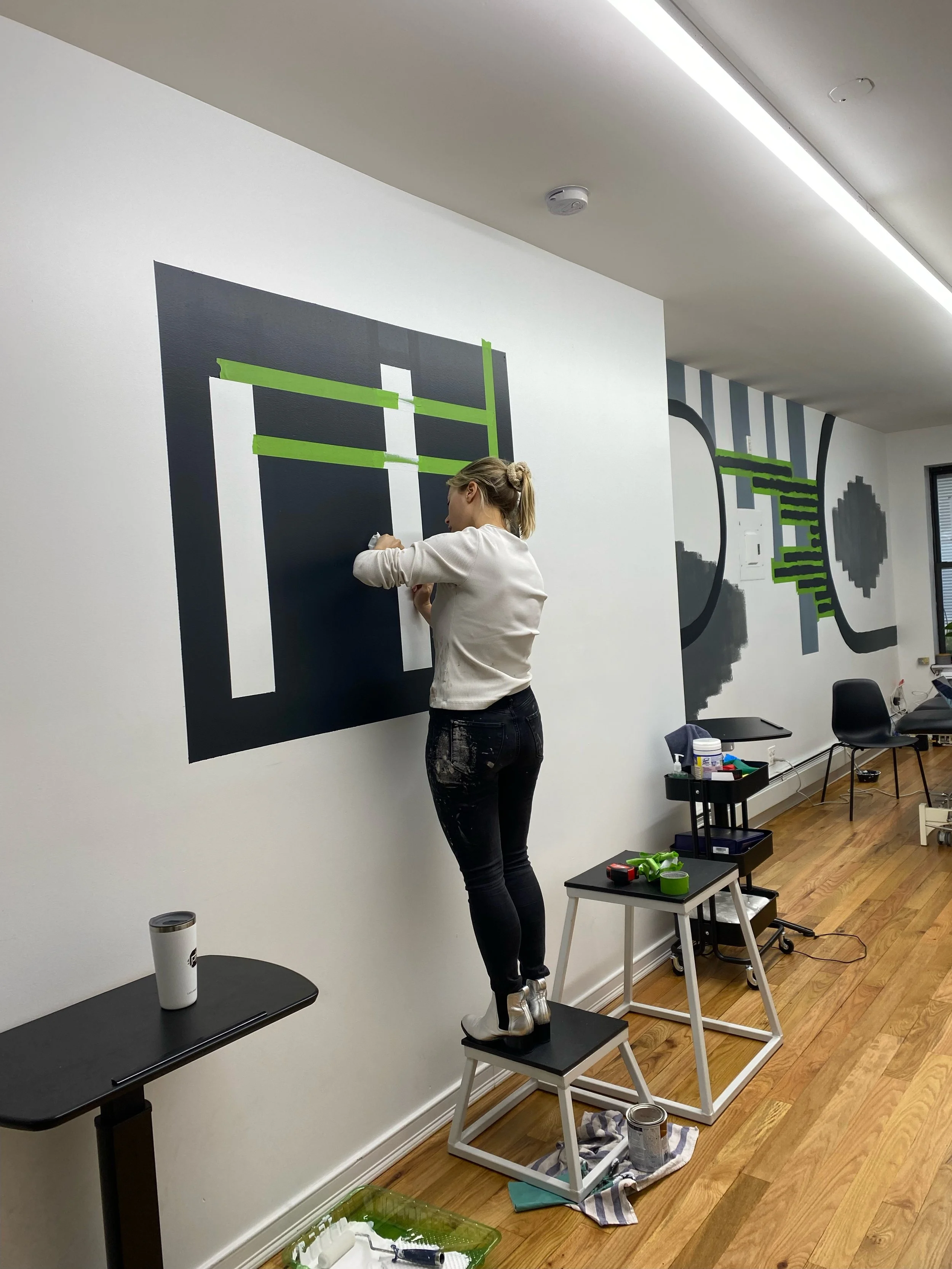 I love painting! I have been hired to create murals and paint logos. For these projects I consult first on the space and size then mock up sketches for the client to agree on a style and overall look. These mural projects usually take me 2-3 days on site and are multiple walls- entire office spaces!