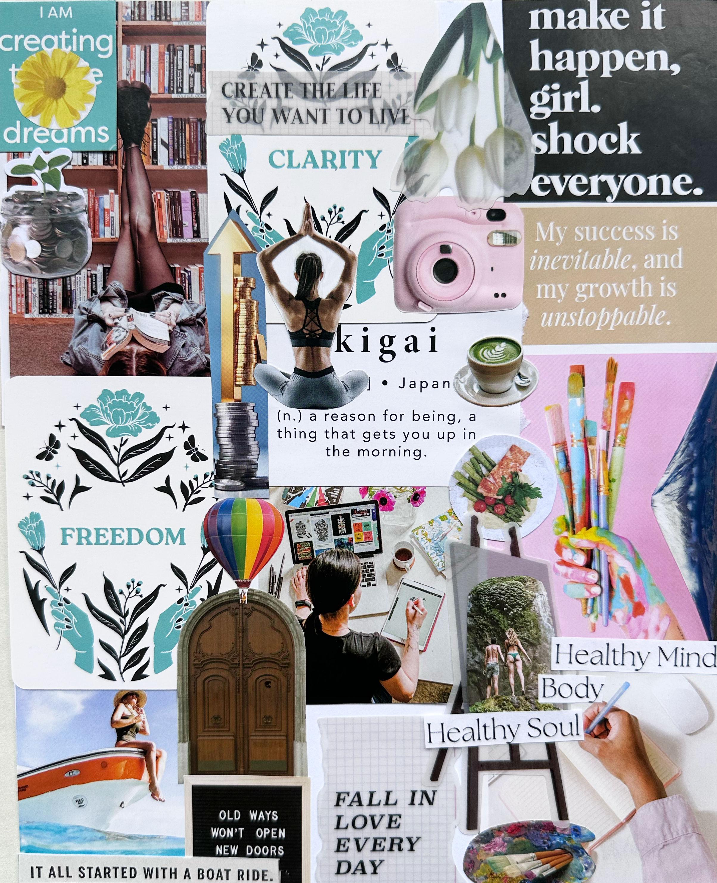 The brightness of the new day and sea of bold balloon colors all around me brought thoughts of opportunities and ideas of freedom. I imagined a mantra around this experience, to forever remember it: new ways open new doors. The thoughts I had that day inspired my vision board for this year, and these motifs came to life on it there first.