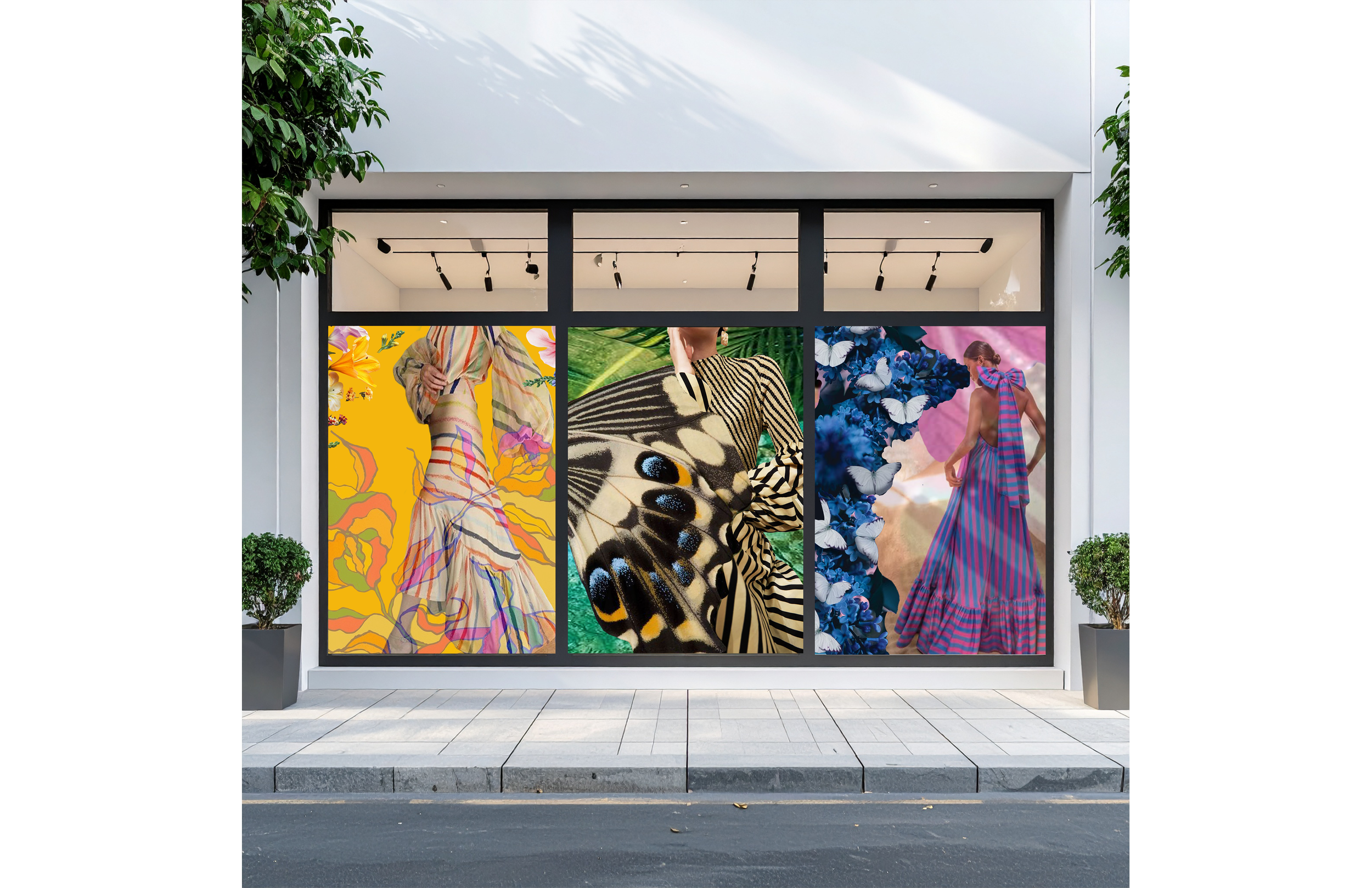While traveling in Singapore (December 2025), I created a store window concept for a new fashion brand, private client. Opening a new store in “the city of the future” meant they were looking for something fresh. Using creative retouching skills, all of these window display campaign ads were created from scratch by me, using Photoshop and Illustrator.